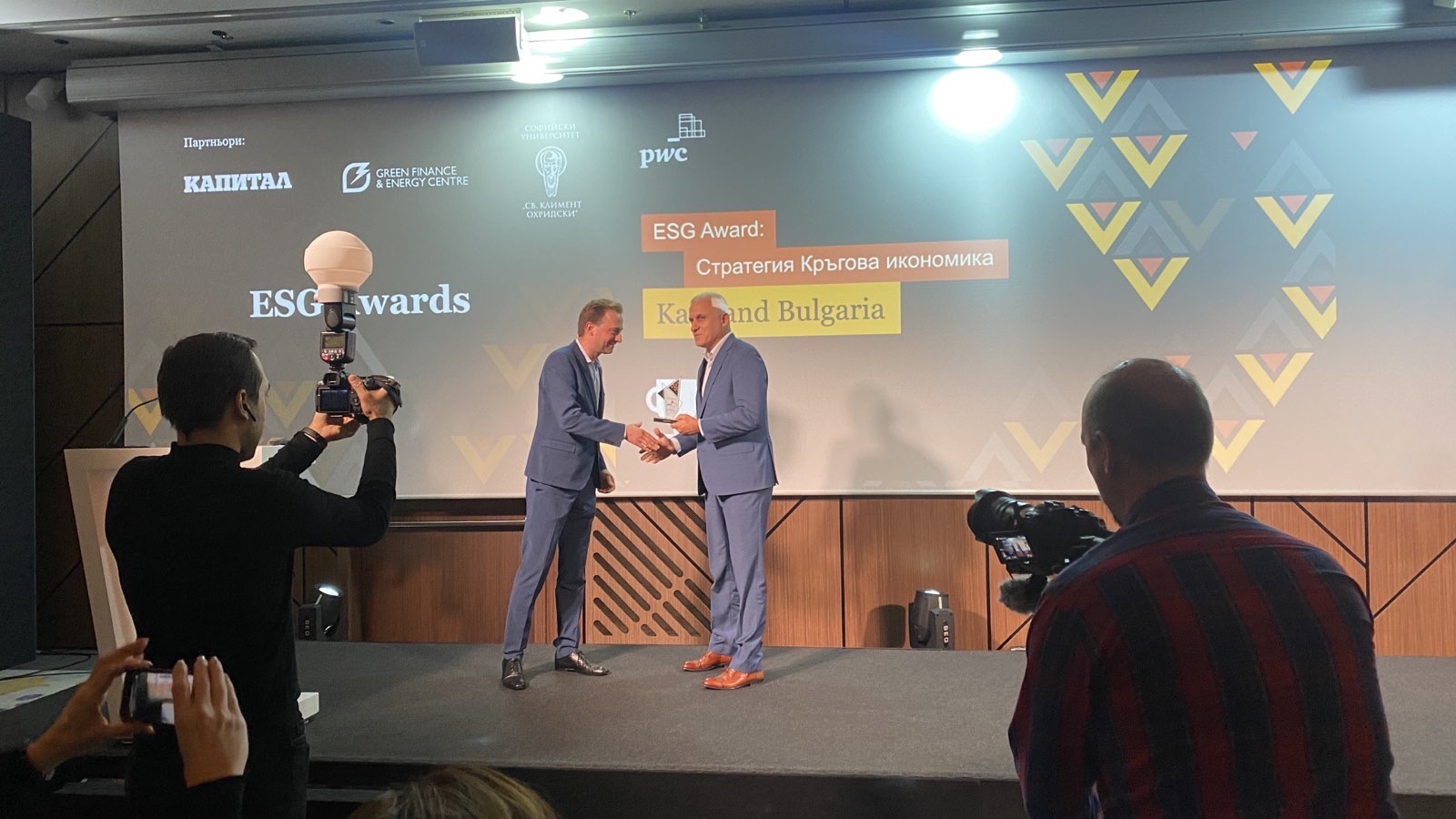 Пилотният проект за обратно събиране на опаковки от PET бутилки и алуминиеви кенове на Kaufland България получи отличие в конкурса „ESG Awards“ на PwC България. Значението на „Станциите за рециклиране“ е оценено в контекста на цялостната стратегия на ритейлъра за кръгова икономика и като продължение на последователните усилия на компанията за ограничаване на пластмасата.