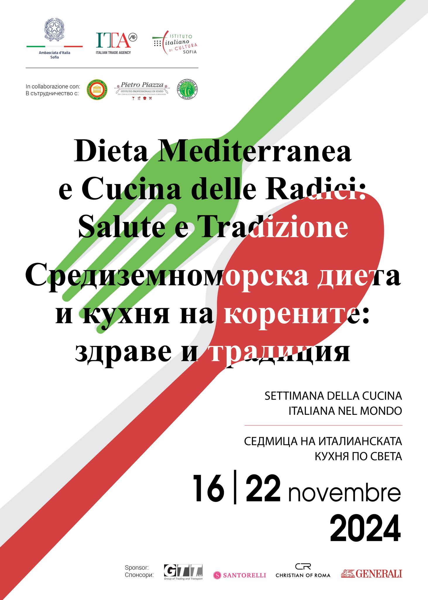 През настоящата 2024 г. деветото издание на Седмицата на италианската кухня бе отбелязано с цяла поредица от инициативи през месец ноември. Те бяха под мотото "Средиземноморската диета и традиционната кухня – здраве и приемственост“.