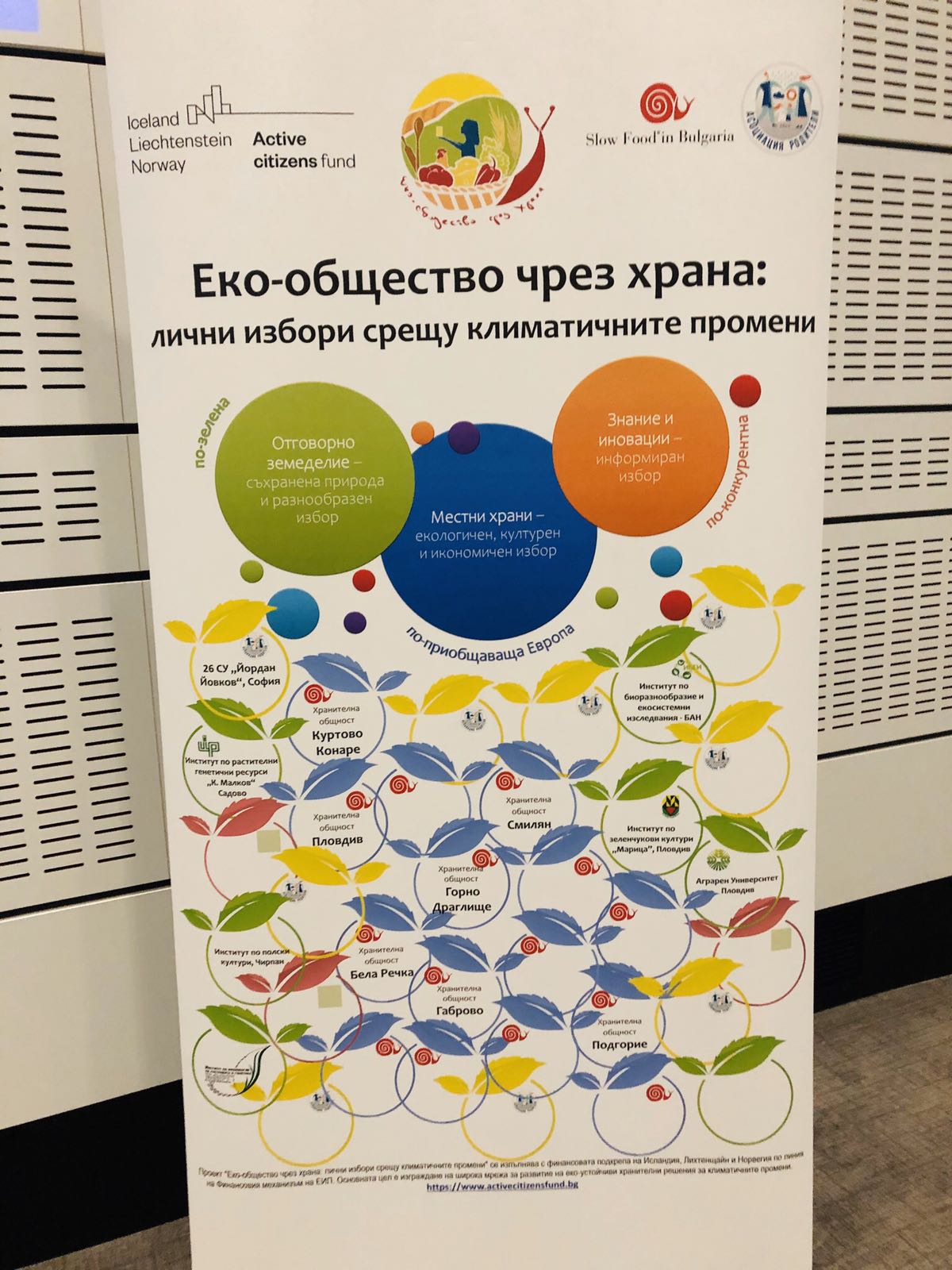 По принцип проектът "Еко-общество чрез храна: лични избори срещу климатичните промени" се реализира с финансова подкрепа в размер на 49 500 евро, предоставена от Исландия, Лихтенщайн и Норвегия по линия на Финансовия механизъм на ЕИП. Изпълнител е Слоу Фуд в България, партньор е СНЦ “Асоциация Родители”. Те са си поставили амбициозната цел за повишаване ангажираността на гражданите с опазване на околната среда и адаптацията към климатичните промени, разширяване на мрежата от партньори на Slow Food в България, които съхраняват, споделят и развиват еко-устойчиви растителни ресурси. Очаква се, че до 2050 г. климатът ни ще стане сух субтропичен. Апокалиптичната картина предполага през 2080 г. по-високи температури поне с 5-8 градуса. И именно тук е мястото на местните общности и как те могат да помогнат с адаптацията към очакваните промени. А и по-значимата и категорична промяна на установения консуматорски модел.