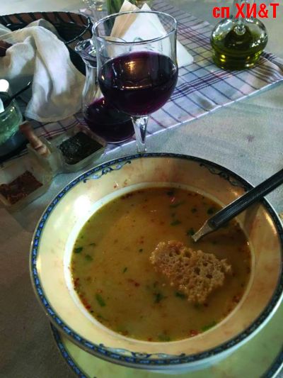 Тук можете да стартирате своя обяд или вечеря обикновено с топеница, лютеница или кьопоолу собствено производство, да загреете с шкембе чорба с дребни горски гъбки, копривена или спаначена чорба, ароматна леща или агнешка такава. Истинските пържени картофки на тиган, прясната пъстърва са изкусителни. По всяко време се приготвя и печен джолан. Затова и на обяд като по часовник пристигат някои от чуждоземците – двама италианци, двама англичани, един австралиец, гърци от съседство. Със сигурност са избрали това кътче от България за свое местообиталище и заради невероятните гозби, сервирани до бумтящата печка или огнище.
