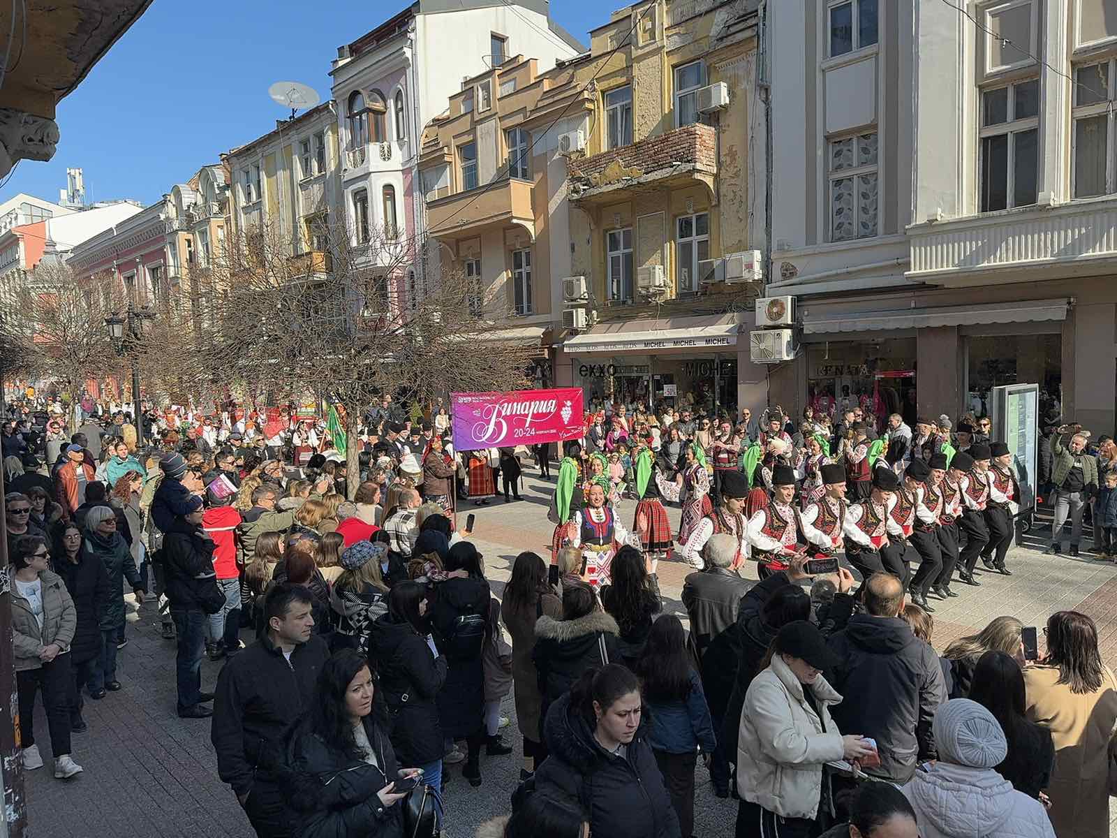 „С гайдарите, кукерите и фолклорните танци днес подгряваме предстоящия форум – една традиция, която Международен панаир Пловдив успешно поддържа десетилетия“, посочи доц. д-р Соколов, преди да вдигне наздравица с най-добри пожелания към всички присъстващи. За последвалите тостове с пълни чаши червено вино на пл. „Стефан Стамболов“ се погрижи Винарска изба „Ямантиеви“. Танцьорите от Ансамбъл „Тракия“ увлякоха пловдивчани в право тракийско хоро, докато други се снимаха с атрактивните кукери от селата Отец Паисиево и Войнягово. Празничното шествие, поведено от емблематичните гайдари на ансамбъл „Еподай“, завърши с много щастливи усмивки и весело настроение.