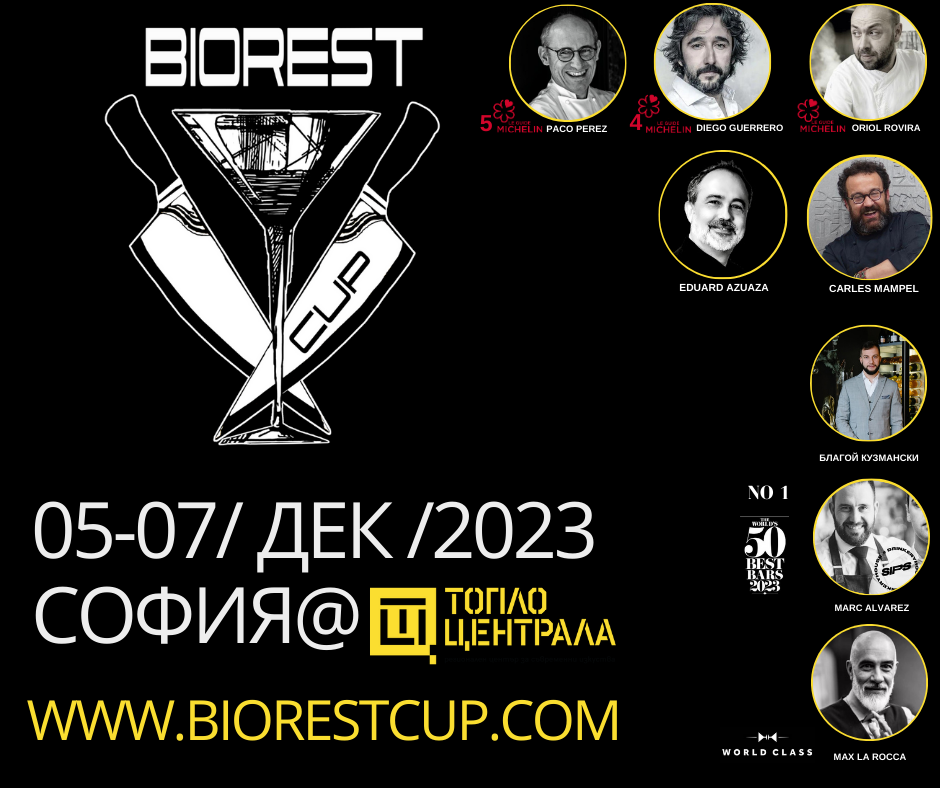През този декември светлините на прожекторите ще са насочени към първото издание на "Biorest Cup 2023" ( Биоресткъп), посветено на гастрономия и бар култура. В периода между 5-и и 7-и декември, форумът ще се проведе в София в регионален център за съвременно изкуство „Топлоцентрала“. На едно място ще се съберат професионалисти, лектори и жури от едни от най-добрите в сферата. Отбрани продукти и ексклузивни менюта, както и ноухау и презентации за последните новости от света на молекулярна кухня и миксология ще бъдат достъпни за българската публика.